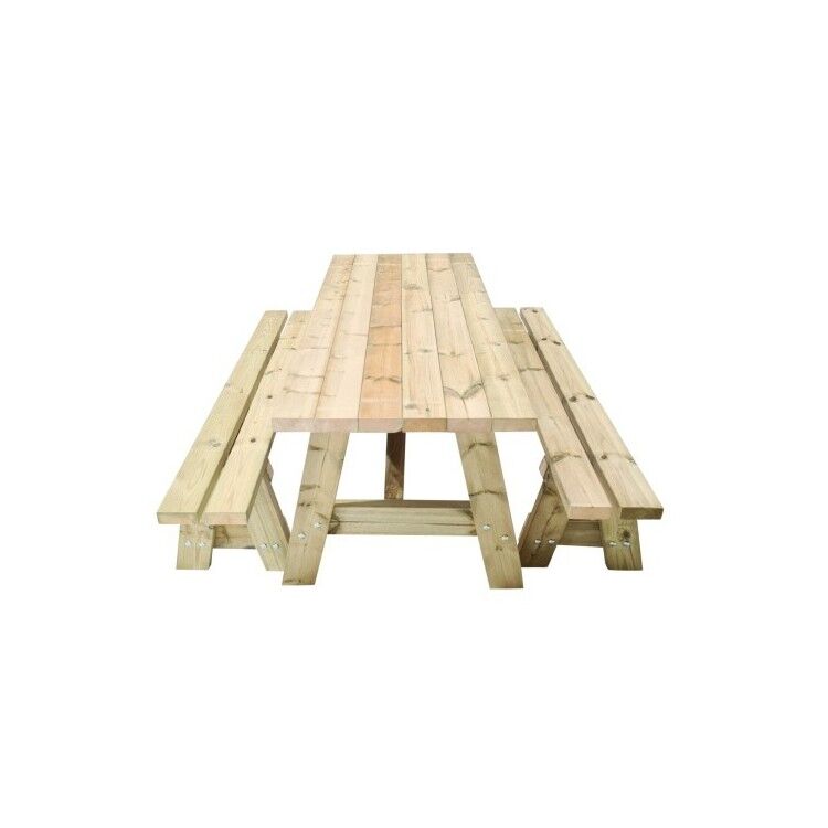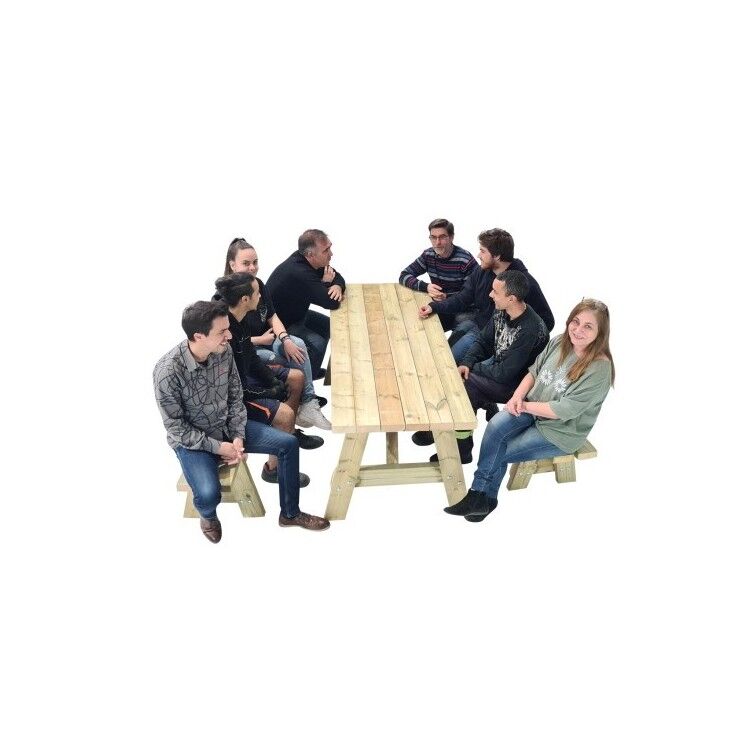 La mesa de picnic MASGAMES ZURICH se presenta como un conjunto con dos bancos, pero también puedes adquirirlos por separado. Sus medidas son las siguientes (con una variación de +/- 2% debido a la dilatación y contracción de la madera):