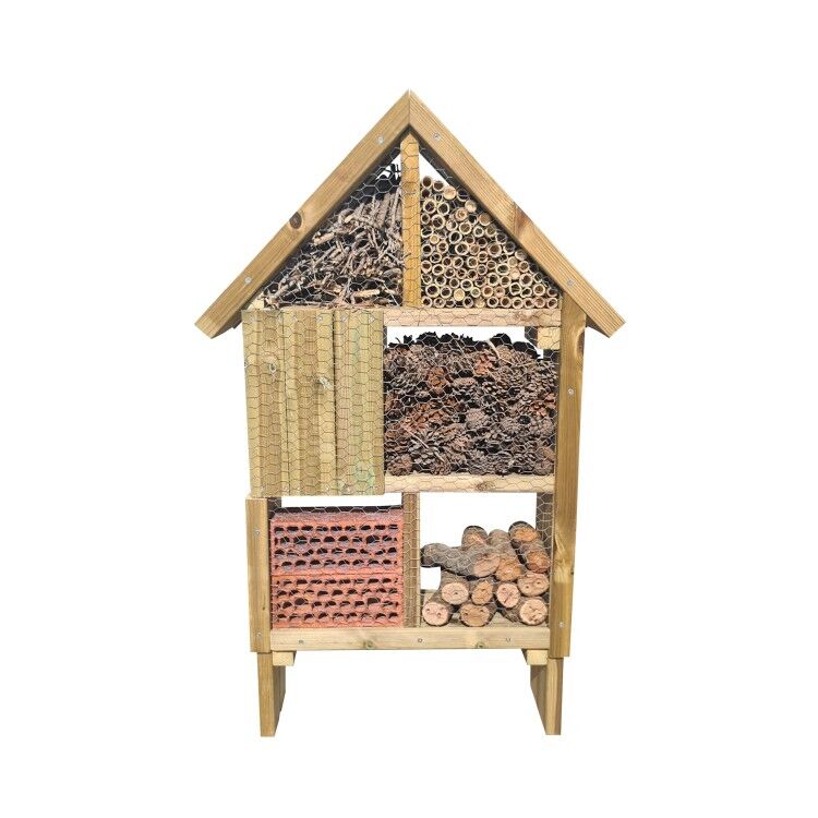 Este hotel cuenta con seis compartimentos especializados, diseñados para atraer y albergar a una amplia variedad de insectos y pequeños animales, desde abejas solitarias y mariquitas hasta mariposas y arañas. Cada sección está optimizada para ofrecer el refugio perfecto para cada especie.